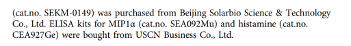 The ELISA kit (MIP1a, SEA092Mu; HA, CEA927Ge) of Cloud-Clone brand was chosed to determine the concentation of MIP1a and HA in this article, we are so proud for supporting the reaserchers.