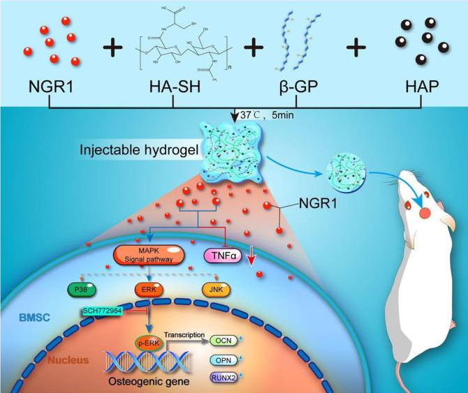 [41]Liu Y, Zhang Y, Zheng Z, et al. Incorporation of NGR1 promotes bone regeneration of injectable HA/nHAp hydrogels by anti-inflammation regulation via a MAPK/ERK signaling pathway. Front Bioeng Biotechnol. 2022;10:992961.