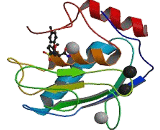 - "Solution structure of the catalytic domain of human collagenase-3 (MMP-13) complexed to a potent non-peptidic sulfonamide inhibitor: binding comparison with stromelysin-1 and collagenase-1."J. Mol. Biol. 301:513-524(2000) [PubMed] [Europe PMC] [Abstract]