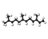 The term farnesene refers to a set of six closely related chemical compounds which all are sesquiterpenes. α-Farnesene and β-farnesene are isomers, differing by the location of one double bond. α-Farnesene is 3,7,11-trimethyl-1,3,6,10-dodecatetraene and β-farnesene is 7,11-dimethyl-3-methylene-1,6,10-dodecatriene. The alpha form can exist as four stereoisomers that differ about the geometry of two of its three internal double bonds (the stereoisomers of the third internal double bond are identical). The beta isomer exists as two stereoisomers about the geometry of its central double bond. Two of the α-farnesene stereoisomers are reported to occur in nature. (E,E)-α-Farnesene is the most common isomer. It is found in the coating of apples, and other fruits, and it is responsible for the characteristic green apple odour. Its oxidation by air gives compounds that are damaging to the fruit.