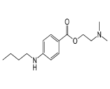 Tetracaine is a potent local anesthetic of the ester group. It is mainly used topically in ophthalmology and as an antipruritic, and it has been used in spinal anesthesia. In biomedical research, tetracaine is used to alter the function of calcium release channels (ryanodine receptors) that control the release of calcium from intracellular stores. Tetracaine is an allosteric blocker of channel function. At low concentrations, tetracaine causes an initial inhibition of spontaneous calcium release events, while at high concentrations, tetracaine blocks release completely. Tetracaine is synthesized from 4-butylaminobenzoic acid. The ethyl ester is formed through an acid-catalyzed esterification reaction. Base-catalyzed transesterification is achieved by boiling the ethyl ester of 4-butylaminobenzoic acid with excess 2-dimethylaminoethanol in the presence of a small amount of sodium ethoxide.