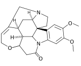 Brucine is a bitter alkaloid closely related to strychnine. It occurs in several plant species, the most well known being the Strychnos nux-vomica tree, found in South-East Asia. A solution of brucine in concentrated sulfuric acid can be used to test for nitrates and nitric acid giving a red color. The alkaloid brucine is isostructural to strychnine, but with methoxy groups at positions 9 and 10 on the aromatic ring rather than hydrogen atoms. Both brucine and strychnine are commonly used as agents for chiral resolution, the separation of racemic mixtures. The ability of brucine, and to a lesser extent strychnine, to function as resolving agents for amino acids was reported by Fisher in 1899. Brucine and strychnine are basic and thus have a tendency to crystallize with acids. The acid-base reaction leaves the brucine protonated at the N(2) position. The formation of diastereomeric salts has been reported for thousands of organic compounds.