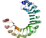 C14orf166B Contains 8LRR (leucine-rich) repeats.A leucine-rich repeat (LRR) is a protein structural motif that forms an α/β horseshoe fold. It is composed of repeating 20–30 amino acid stretches that are unusually rich in the hydrophobic amino acid leucine. Typically, each repeat unit has beta strand-turn-alpha helix structure, and the assembled domain, composed of many such repeats, has a horseshoe shape with an interior parallel beta sheet and an exterior array of helices. One face of the beta sheet and one side of the helix array are exposed to solvent and are therefore dominated by hydrophilic residues. The region between the helices and sheets is the protein's hydrophobic core and is tightly sterically packed with leucine residues. Leucine-rich repeats are frequently involved in the formation of protein–protein interactions.