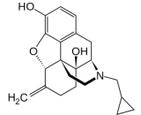 Nalmefene is an opioid receptor antagonist used primarily in the management of alcohol dependence. Nalmefene is an opiate derivative similar in both structure and activity to the opioid antagonist naltrexone. Advantages of nalmefene relative to naltrexone include longer half-life, greater oral bioavailability and no observed dose-dependent liver toxicity. As with other drugs of this type, nalmefene can precipitate acute withdrawal symptoms in patients who are dependent on opioid drugs, or more rarely when used post-operatively to counteract the effects of strong opioids used in surgery. Nalmefene acts as a silent antagonist of the μ-opioid receptor and as a partial agonist of the κ-opioid receptor. It also possesses affinity for the δ-opioid receptor. Nalmefene differs from naltrexone by substitution of the ketone group at the 6-position of naltrexone with a methylene group (CH2), which considerably increases binding affinity to the μ-opioid receptor.
