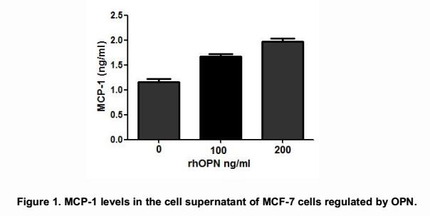 MCP-1 levels in the cell supernatant of MCF-7 cells increased significantly after stimulated with OPN, the data was shown in Table 1 and Figure 1.