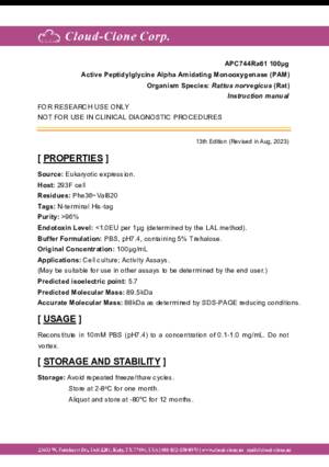 | APC744Ra61 | Active Peptidylglycine Alpha Amidating Monooxygenase (PAM) | Cell culture; Activity Assays. |