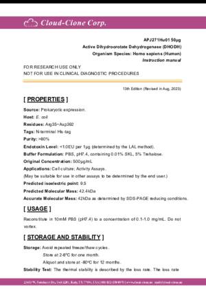 | APJ271Hu01 | Active Dihydroorotate Dehydrogenase (DHODH) | Cell culture; Activity Assays. |