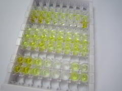 6. Add 90µL Substrate Solution. Incubate 10-20 minutes at 37°C;