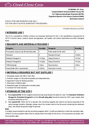 | CEA836Bo | ELISA Kit for Adrenocorticotropic Hormone (ACTH) | Enzyme-linked immunosorbent assay for Antigen Detection. |