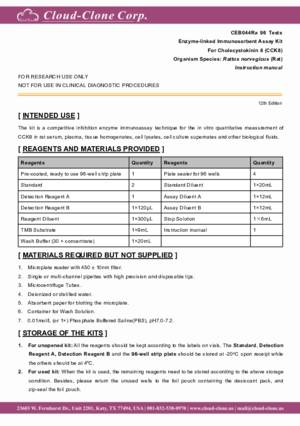 | CEB044Ra | ELISA Kit for Cholecystokinin 8 (CCK8) | Enzyme-linked immunosorbent assay for Antigen Detection. |