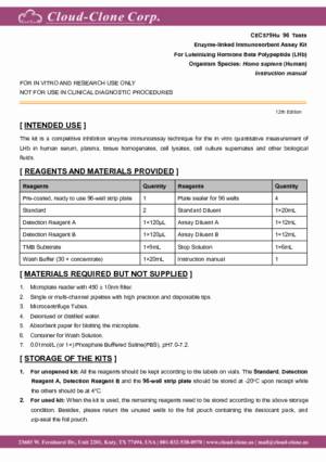 Intra-assay Precision (Precision within an assay): 3 samples with low, middle and high level Luteinizing Hormone Beta Polypeptide (LHb) were tested 20 times on one plate, respectively.