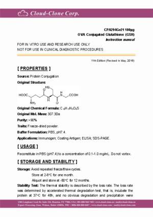 | CPA294Ge21 | OVA Conjugated Glutathione (GSH) | Immunogen; SDS-PAGE; WB. |