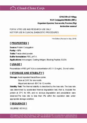 | CPA575Po32 | KLH Conjugated Motilin (MTL) | Immunogen; SDS-PAGE; WB. |