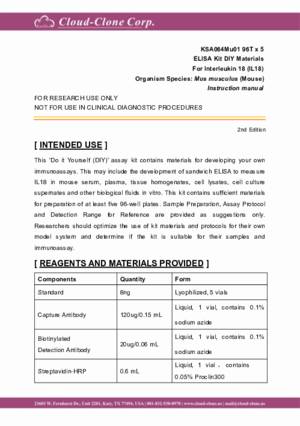 | KSA064Mu01 | ELISA Kit DIY Materials for Interleukin 18 (IL18) | Main materials for "Do It (ELISA Kit) Yourself". |
