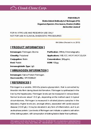 | LAA193Bo71 | Biotin-Linked Polyclonal Antibody to Fibrinogen (FG) | WB |
