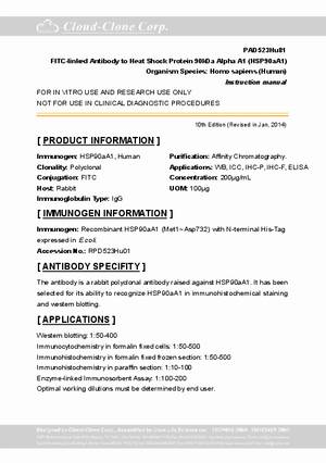 | PAD523Hu01 | Polyclonal Antibody to Heat Shock Protein 90kDa Alpha A1 (HSP90aA1) | WB; IHC; ICC/IF |