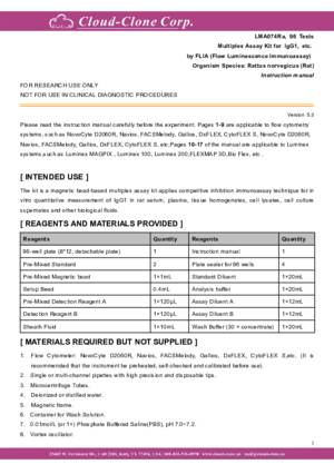 | LMA074Ra | Multiplex Assay Kit for Immunoglobulin G1 (IgG1) ,etc. by FLIA (Flow Luminescence Immunoassay) | FLIA Kit for Antigen Detection. |