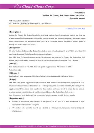 | MSI255Ra11 | Medium for Rat Tendon Stem Cells ( TDSC) | Medium for Rat Tendon Stem Cells |
