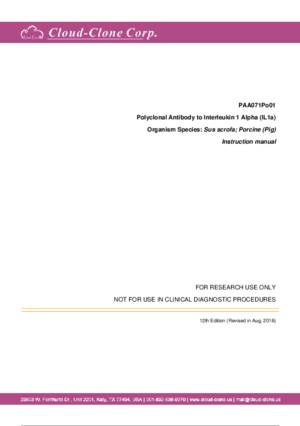 | PAA071Po01 | Polyclonal Antibody to Interleukin 1 Alpha (IL1a) | WB; IHC; ICC; IP. |