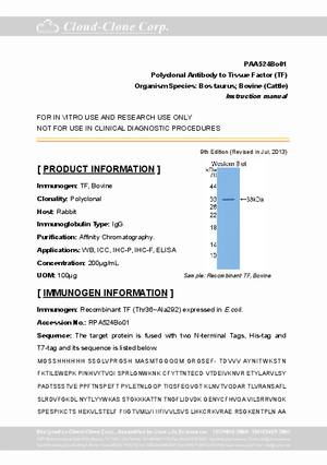 | PAA524Bo01 | Polyclonal Antibody to Tissue Factor (TF) | WB; IHC |
