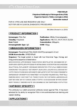 - Immunogen RPB215Ra01-Recombinant Fibrinogen Beta Chain (FGB)