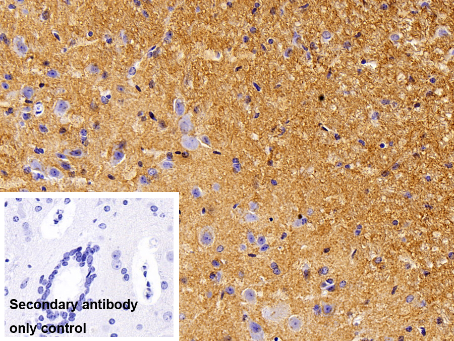 The antibody is a rabbit polyclonal antibody raised against SNAP25. It has been selected for its ability to recognize SNAP25 in immunohistochemical staining and western blotting.