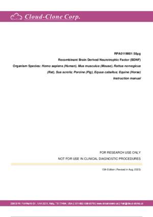 | RPA011Mi01 | Recombinant Brain Derived Neurotrophic Factor (BDNF) | Positive Control; Immunogen; SDS-PAGE; WB. |