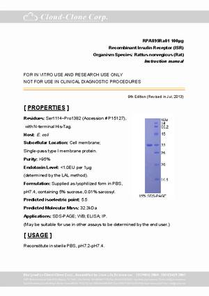 | RPA895Ra01 | Recombinant Insulin Receptor (INSR) | Positive Control; Immunogen; SDS-PAGE; WB. |