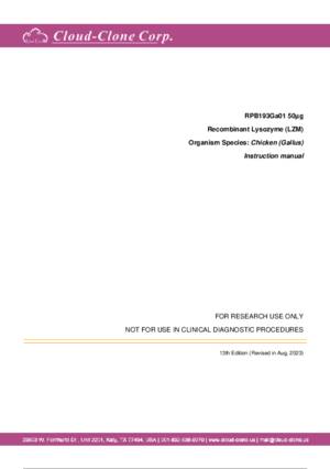 | RPB193Ga01 | Recombinant Lysozyme (LZM) | Positive Control; Immunogen; SDS-PAGE; WB. |