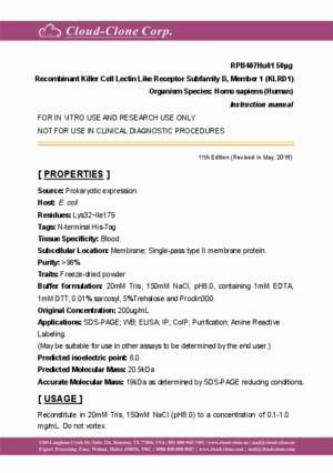| RPB407Hu01 | Recombinant Killer Cell Lectin Like Receptor Subfamily D, Member 1 (KLRD1) | Positive Control; Immunogen; SDS-PAGE; WB. |