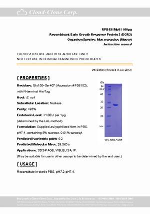 | RPB451Mu01 | Recombinant Early Growth Response Protein 2 (EGR2) | Positive Control; Immunogen; SDS-PAGE; WB. |