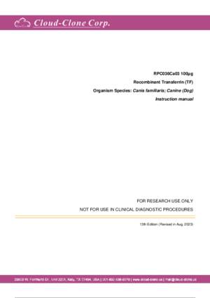 | RPC036Ca02 | Recombinant Transferrin (TF) | Positive Control; Immunogen; SDS-PAGE; WB. |