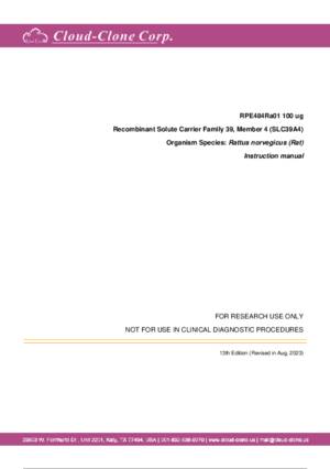 | RPE484Ra01 | Recombinant Solute Carrier Family 39, Member 4 (SLC39A4) | Positive Control; Immunogen; SDS-PAGE; WB. |