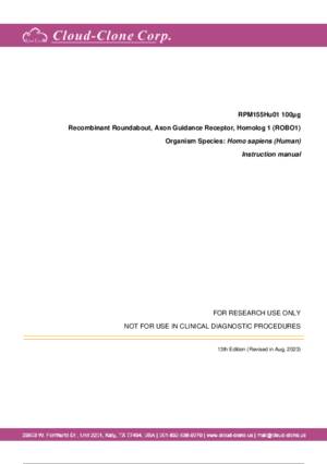 | RPM155Hu01 | Recombinant Roundabout, Axon Guidance Receptor, Homolog 1 (ROBO1) | Positive Control; Immunogen; SDS-PAGE; WB. |