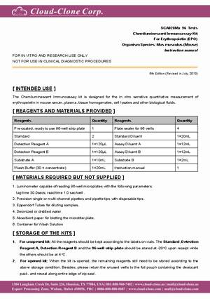 | SCA028Mu | CLIA Kit for Erythropoietin (EPO) | Chemiluminescent immunoassay for Antigen Detection. |
