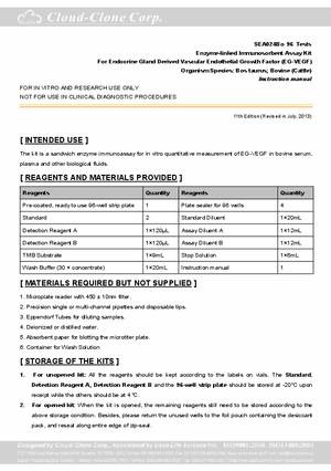 | SEA024Bo | ELISA Kit for Endocrine Gland Derived Vascular Endothelial Growth Factor (EG-VEGF) | Enzyme-linked immunosorbent assay for Antigen Detection. |