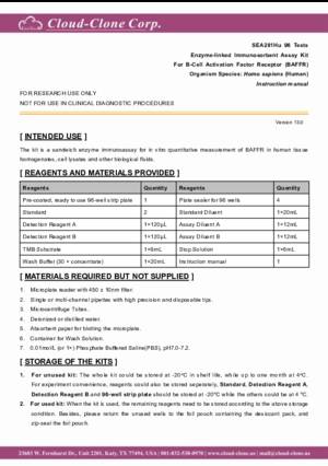 This assay has high sensitivity and excellent specificity for detection of B-Cell Activation Factor Receptor (BAFFR).