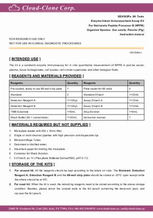 | SEA503Po | ELISA Kit for Natriuretic Peptide Precursor B (NPPB) | Enzyme-linked immunosorbent assay for Antigen Detection. |