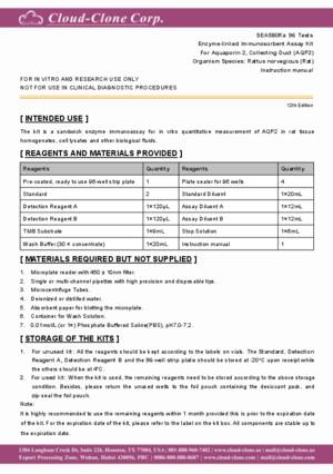 | SEA580Ra | ELISA Kit for Aquaporin 2, Collecting Duct (AQP2) | Enzyme-linked immunosorbent assay for Antigen Detection. |