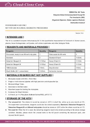| SEB331Hu | ELISA Kit for Involucrin (INV) | Enzyme-linked immunosorbent assay for Antigen Detection. |