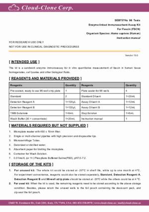 | SEB757Hu | ELISA Kit for Fascin (FSCN) | Enzyme-linked immunosorbent assay for Antigen Detection. |