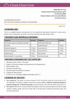 | SEC513Mu | ELISA Kit for Granulin (GRN) | Enzyme-linked immunosorbent assay for Antigen Detection. |