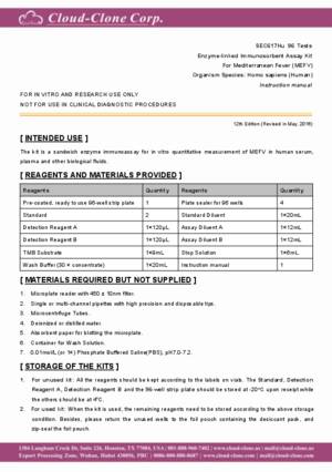 | SEC617Hu | ELISA Kit for Mediterranean Fever (MEFV) | Enzyme-linked immunosorbent assay for Antigen Detection. |