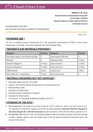 | SEE041Hu | ELISA Kit for Perilipin 3 (PLIN3) | Enzyme-linked immunosorbent assay for Antigen Detection. |