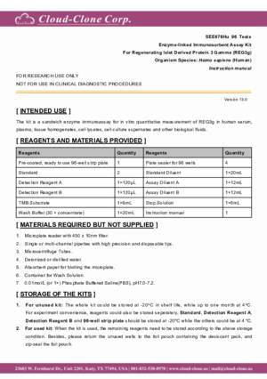 This assay has high sensitivity and excellent specificity for detection of Regenerating Islet Derived Protein 3 Gamma (REG3g).