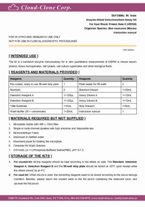 | SEF358Mu | ELISA Kit for Heat Shock Protein Beta 6 (HSPb6) | Enzyme-linked immunosorbent assay for Antigen Detection. |