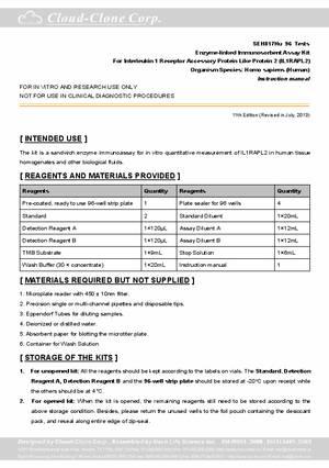 | SEH817Hu | ELISA Kit for Interleukin 1 Receptor Accessory Protein Like Protein 2 (IL1RAPL2) | Enzyme-linked immunosorbent assay for Antigen Detection. |
