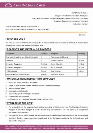 | SEP376Hu | ELISA Kit for Calcium Channel, Voltage Dependent, Gamma Subunit 6 (CACNg6) | Enzyme-linked immunosorbent assay for Antigen Detection. |