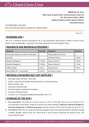 | WED381Hu | Wide-range ELISA Kit for Glia Derived Nexin (GDN) | Enzyme-linked immunosorbent assay for Antigen Detection. |