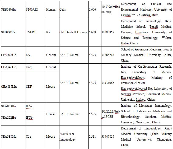In August 2019, Literature of Cloud Clone products has exceeded 210. Cloud-Clone could provide multiple proteins, antibodies and ELISA kit, which has been praised by customers.